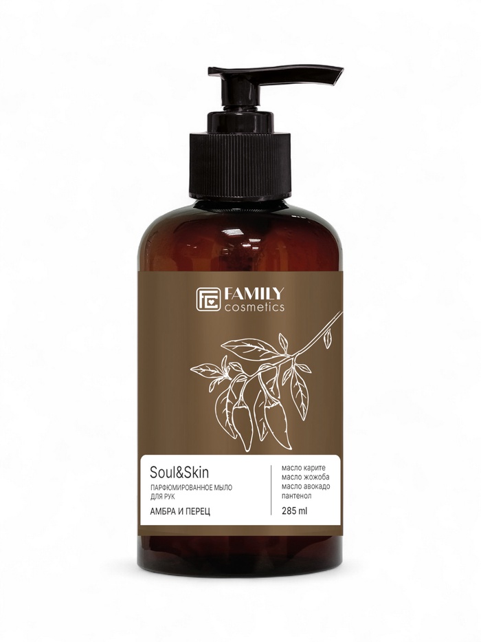 Мыло для рук парфюмированное Soul&Skin амбра и перец, 285 мл