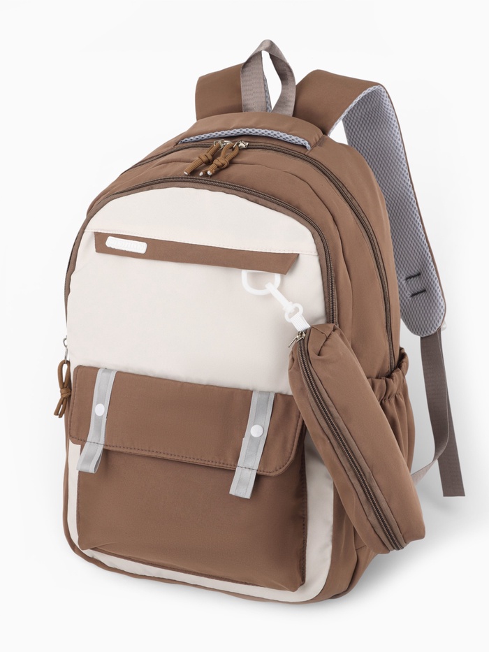 Рюкзак 31*14*44 см, 2 отд. 3 н/карм+пенал, Комби корич/бел