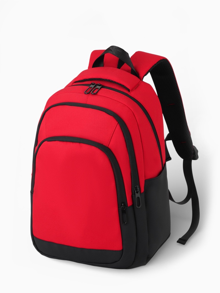 Рюкзак, 27*14*38,5 см, 2 отд 3н/карм, Комби, Водонепрон. дно, красный/черн