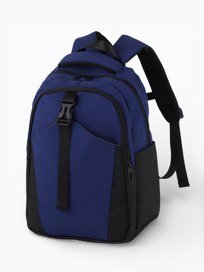 Рюкзак, 27*14*39 см, 2 отд 3н/карм, Комби, Водонепрон. дно, синий/черн