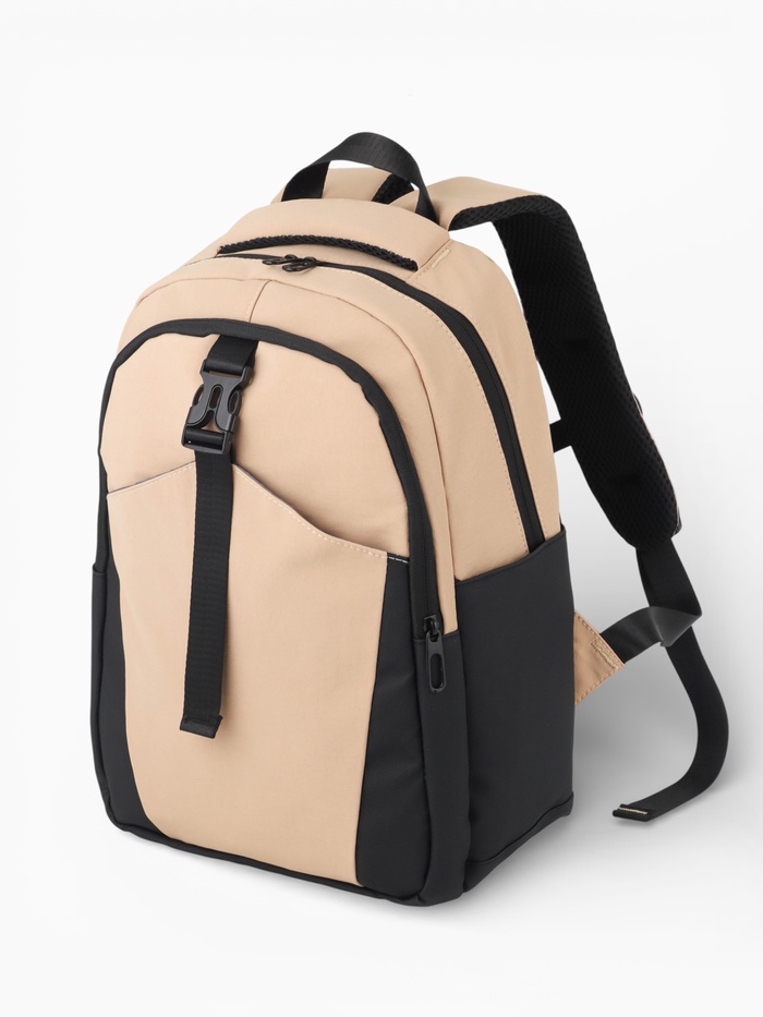 Рюкзак, 27*13*38,5 см, 2 отд 3н/карм, Комби, Водонепрон. дно, бежевый/черн