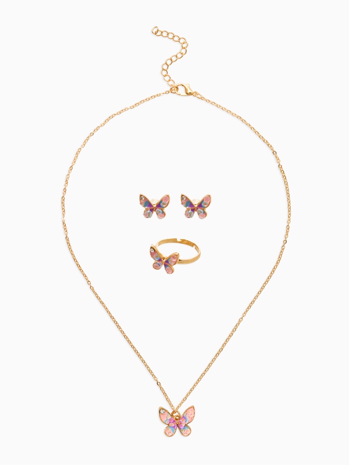 Набор детский "Выбражулька" 3 пред-а: кулон, кольцо, серьги, бабочка, разноцветный в золоте 109615