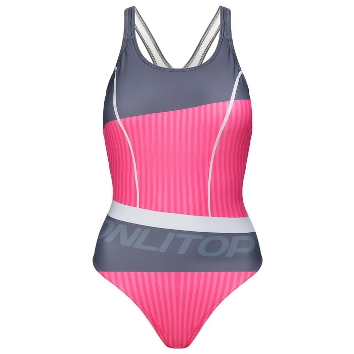 Купальник слитный ONLYTOP, р. 48, спортивный, розовый, серый