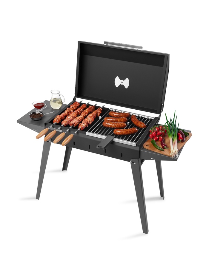 Мангал «Классика 600К», 100.2×38×69 см, 2 мм, складные ножки, боковые полки, крышка
