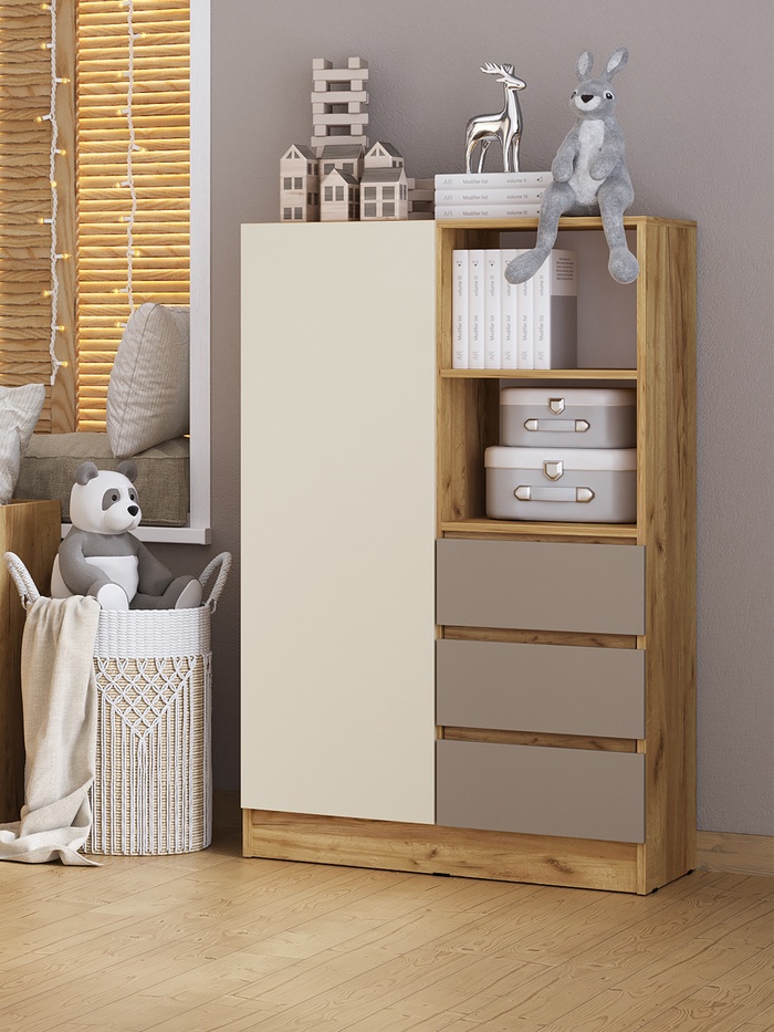 Шкаф комбинированный «Челси» Color, 800×400×1300 мм, цвет слоновая кость/глиняный серый/дуб крафт