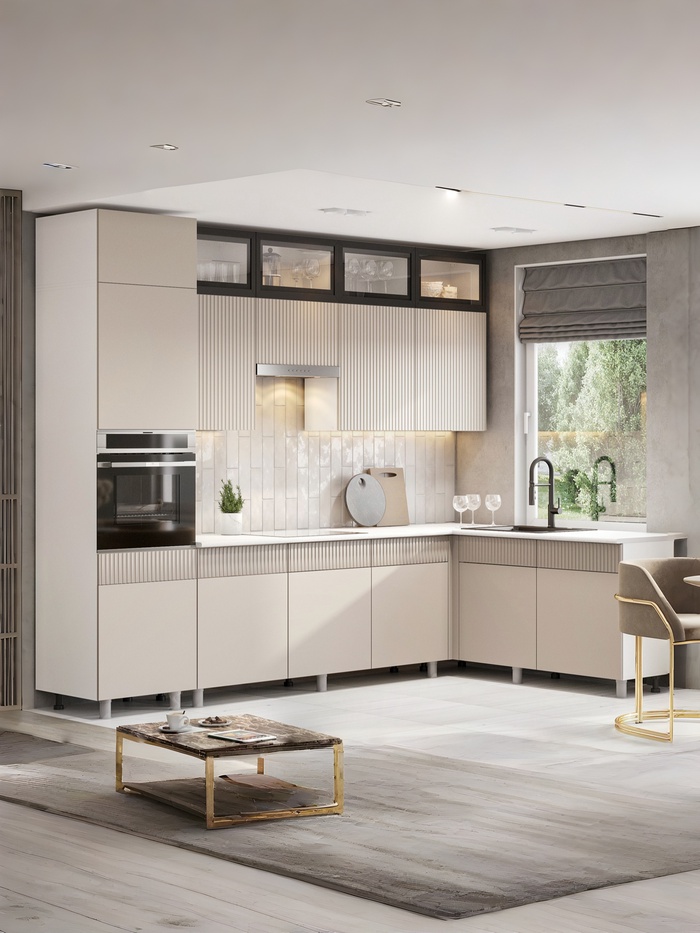 Кухонный гарнитур угловой до потолка «София», 3000×1800 мм, цвет кашемир/кашемир МДФ