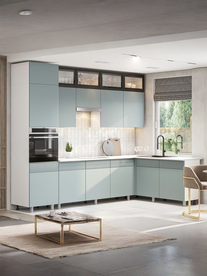 Кухонный гарнитур угловой до потолка «София», 3000×1800 мм, цвет голубой МДФ