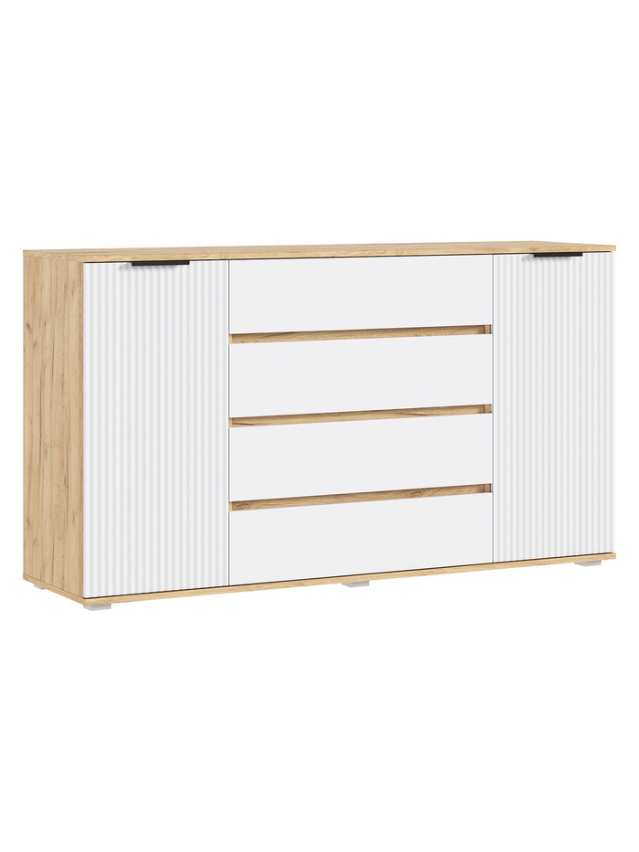 Комод напольный «Марвэл», 2 двери, 4 ящика, 1600 мм, цвет браш вайт/дуб крафт