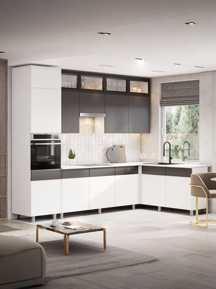 Кухонный гарнитур угловой до потолка «София», 3000×1800 мм, цвет белый/графит МДФ