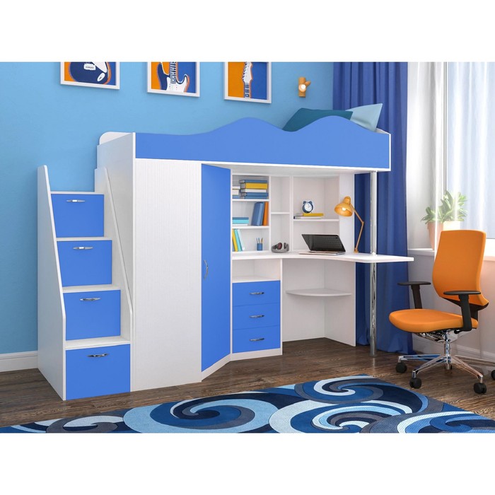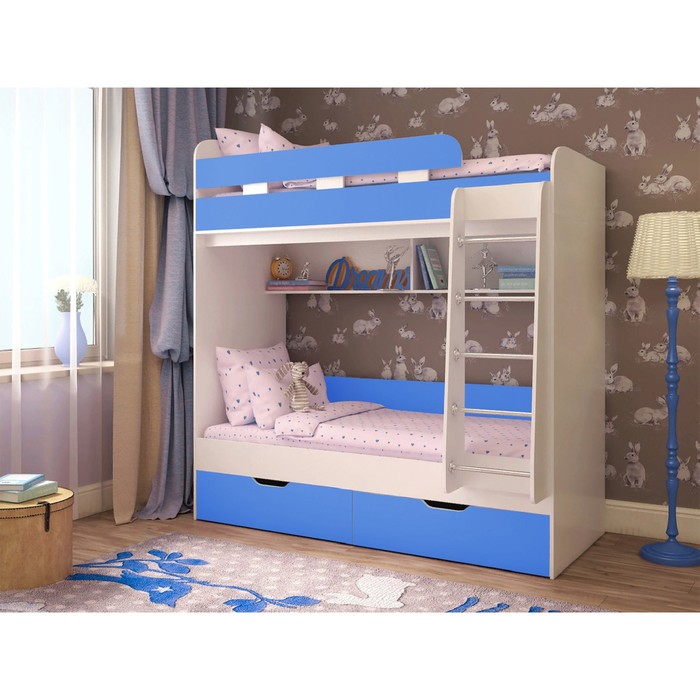 Детская двухъярусная кровать Юниор-5 белое дерево/голубой