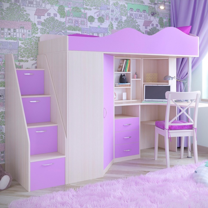 Детская кровать-чердак Пионер дуб молочный/ирис