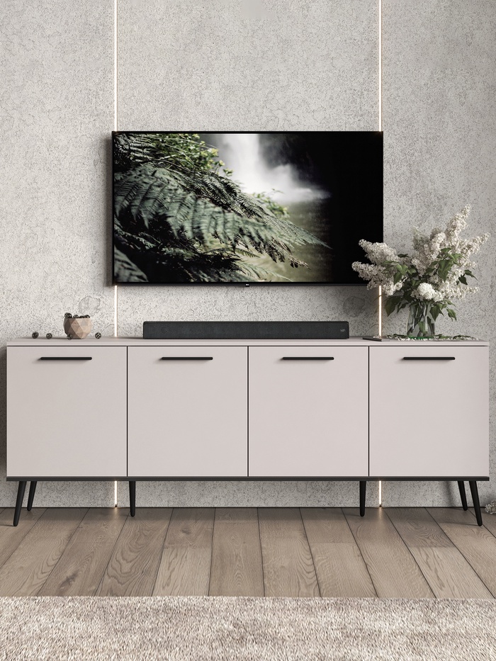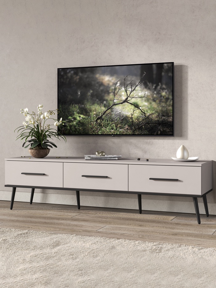 Тумба под ТВ «Роджина», 1502×426×511 мм, цвет кашемир/дуб крафт серый