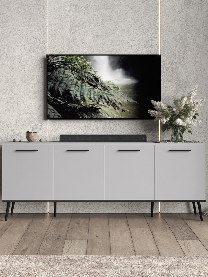 Тумба под ТВ Мишель, 1652х450х440, Шиншилла серая