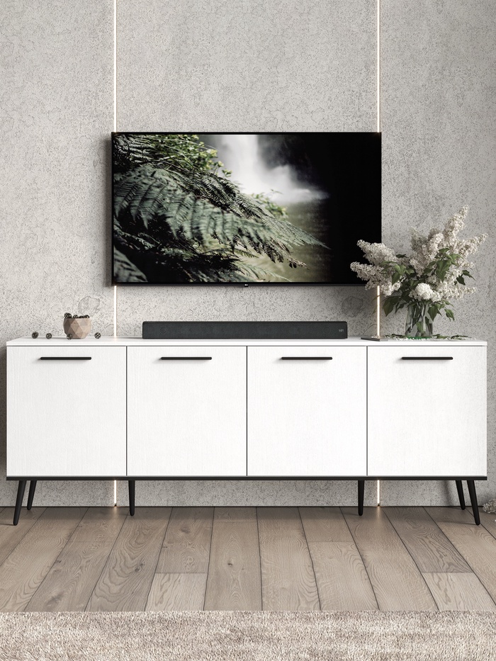 Тумба под ТВ «Инкастро», 2580×610×373 мм, цвет белый / бетон светлый ЛДСП