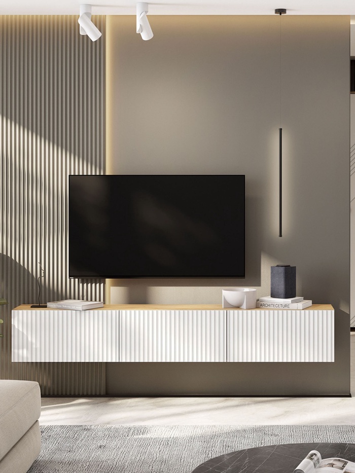 Тумба под ТВ подвесная Байкал, 1898х296х300, Дуб золотой/Белый