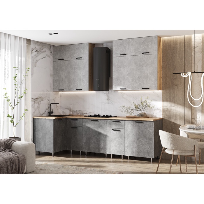 Кухонный гарнитур угловой «Рио» New, 1000×2600 мм, цвет бетон светлый/бетон тёмный/дуб вотан