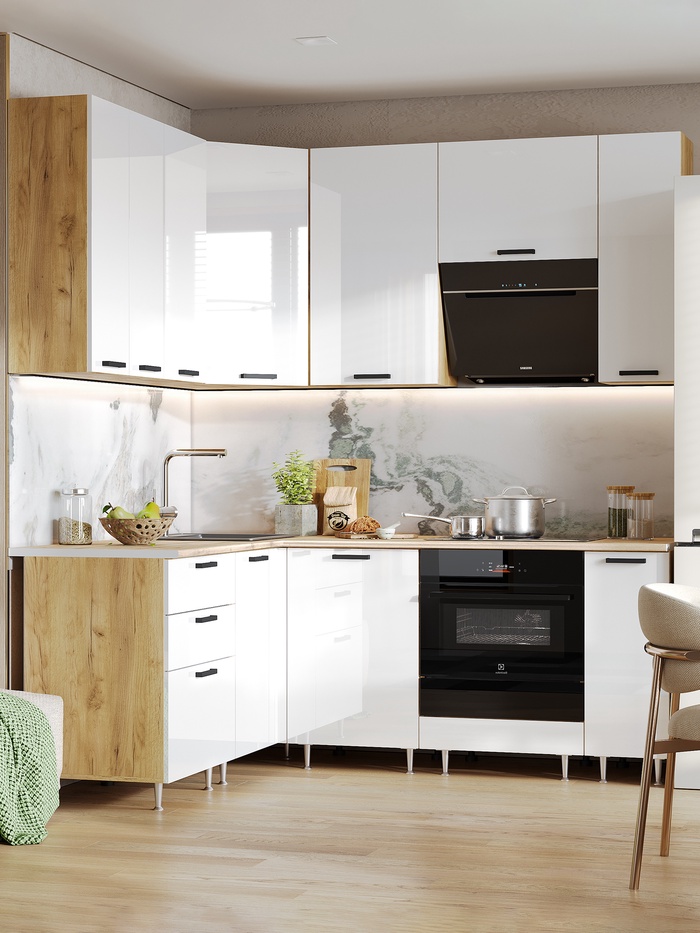 Кухонный гарнитур угловой «Рио» New, 1600×2000 мм, цвет белый глянец/дуб крафт/дуб вотан