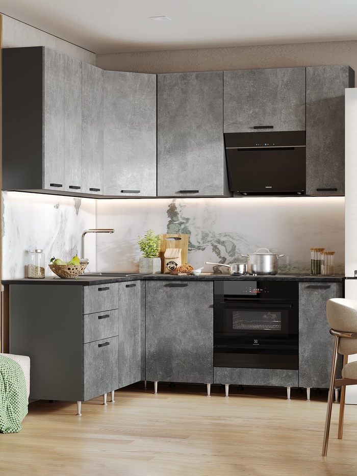 Кухонный гарнитур угловой «Рио» New, 1600×2000 мм, цвет бетон свет/бетон тёмный/графит/кастилло