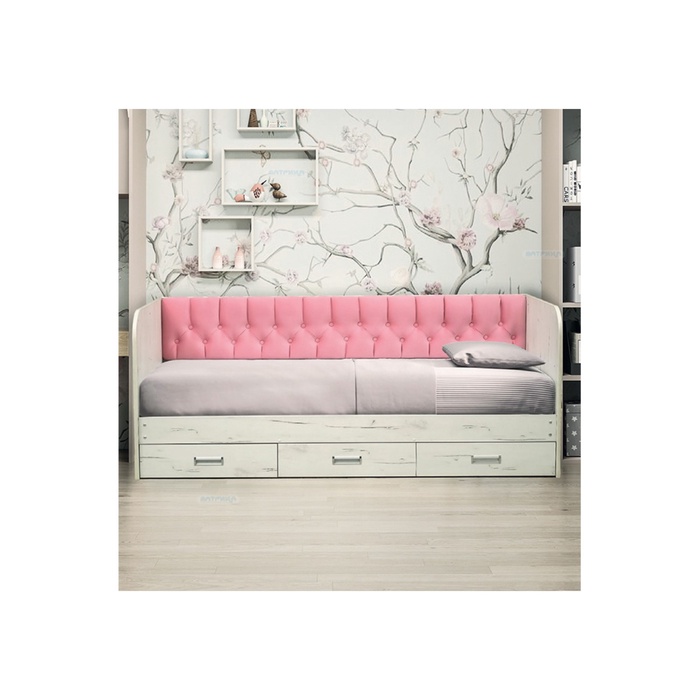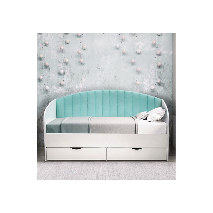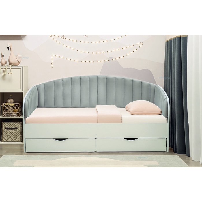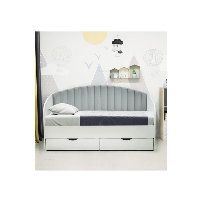 Кровать одинарная с мягкой головной спинкой"Ромашка" 900*2000 ЛДСП белый/велюр 009