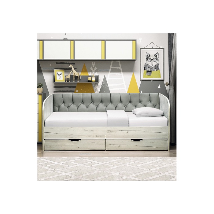 Кровать с продольной мягкой спинкой "Софа №14" 900*2000 ЛДСП Дуб крафт белый/велюр 032