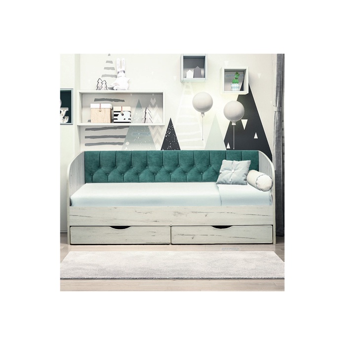 Кровать с продольной мягкой спинкой "Софа №14" 900*2000 ЛДСП Дуб крафт белый/велюр 336
