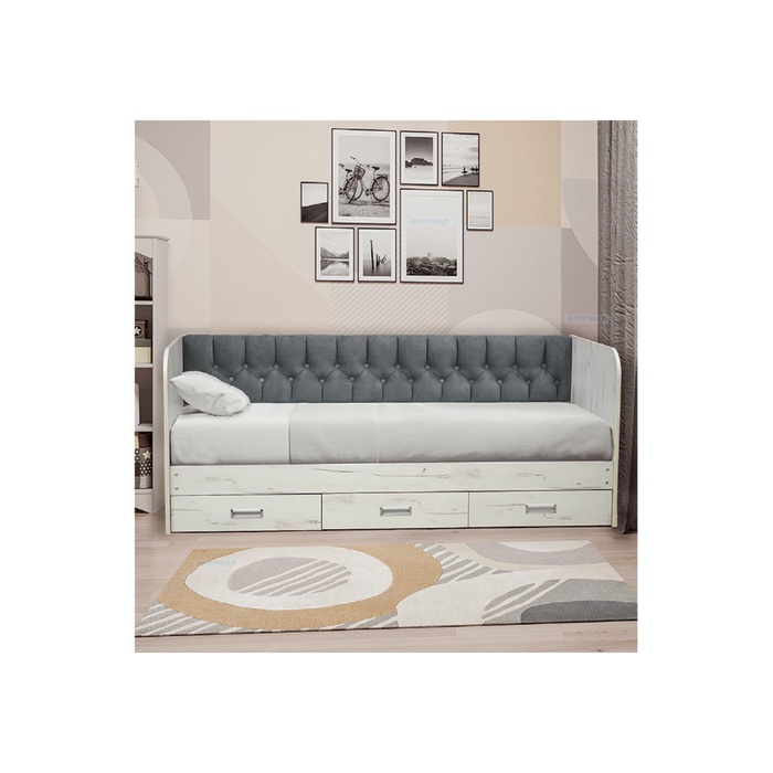 Кровать с продольной мягкой спинкой "Софа №14.1" 900*2000 ЛДСП Дуб крафт белый/велюр 032