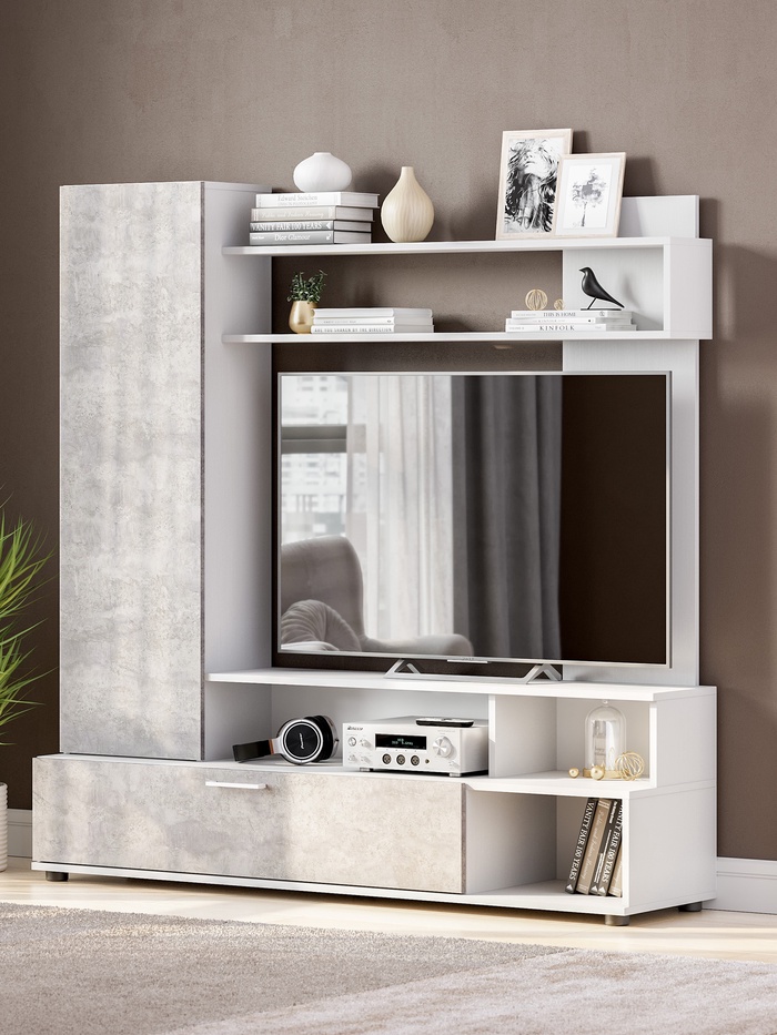 Гостиная МГС9, 1500х380х1535, Белый/Цемент светлый