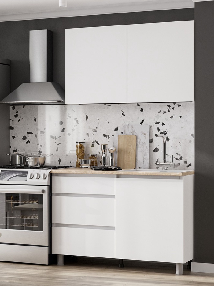 Кухонный гарнитур 1200 Денвер, Белый/Столешница Дуб сонома
