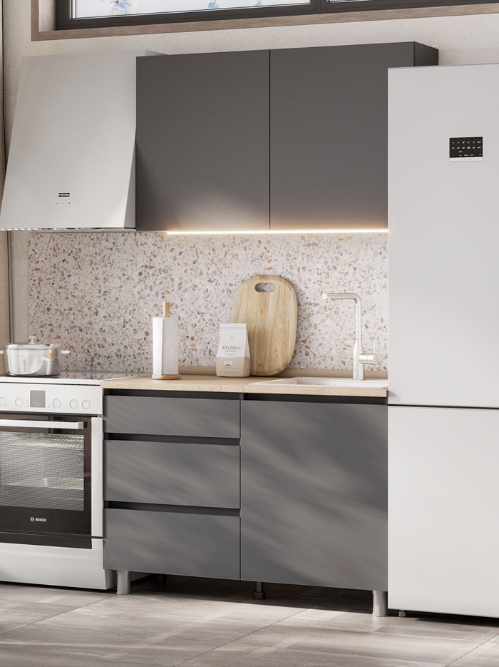Кухонный гарнитур 1200 Денвер, Графит/Столешница Дуб сонома