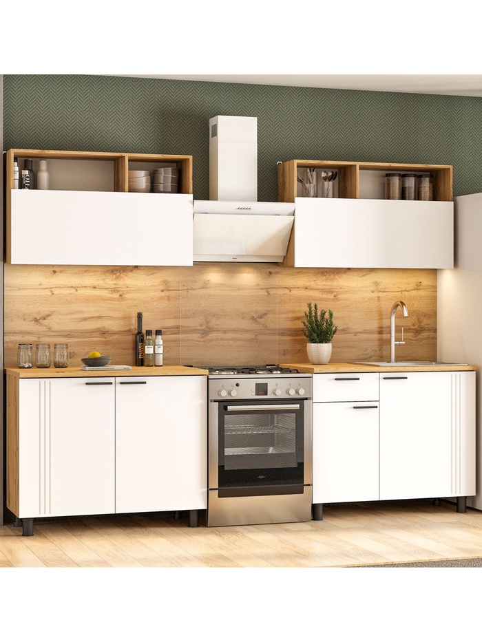 Кухонный гарнитур 2000 Монако , Белый МДФ/Дуб золотой ЛДСП/ Столешница Дуб вотан