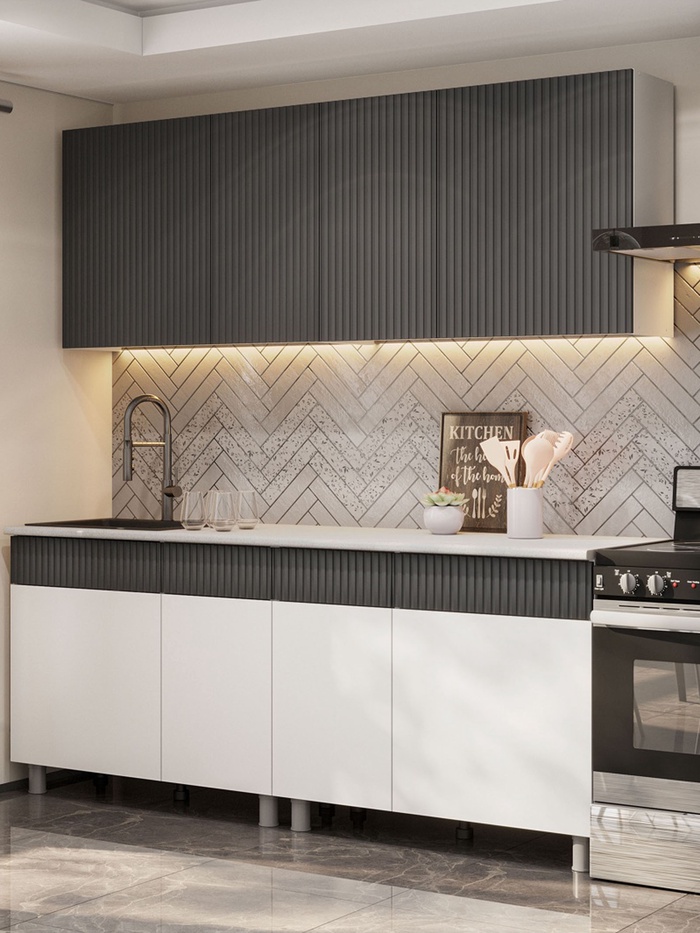 Кухонный гарнитур 2000 София, Графит МДФ/Белый МДФ/Столешница Антарес