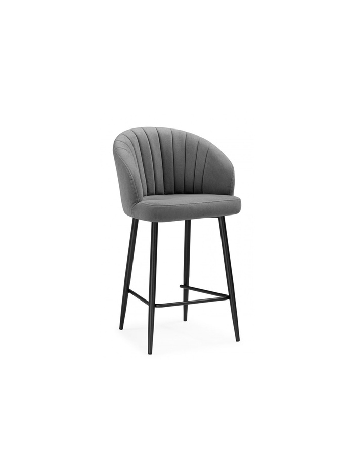 Стул барный Porch, со спинкой, велюр, цвет хром/серый