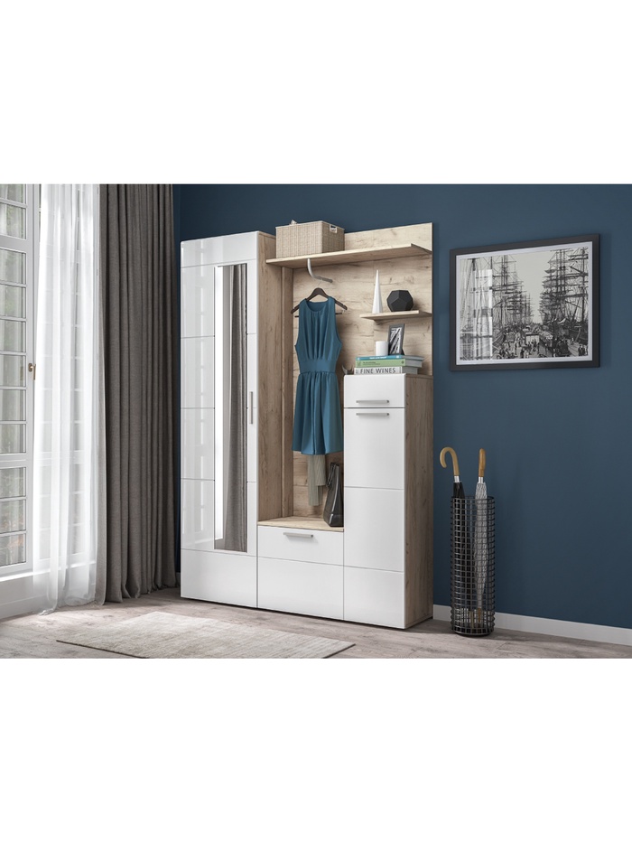 Прихожая Лайн 1, 2 предмета, Дуб крафт серый/Белый глянец
