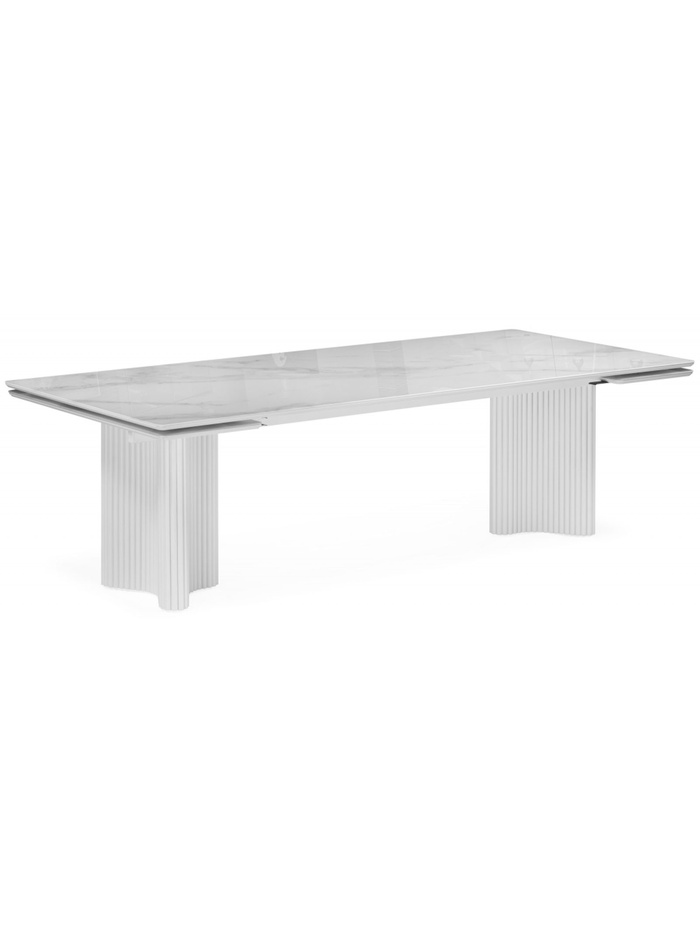 Стеклянный стол Мален 240x110 белый мрамор / белый