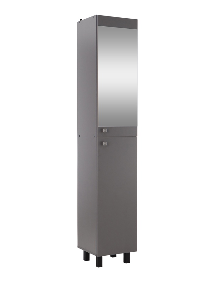 Шкаф - пенал для ванной комнаты зеркальный Пронто Графит, 36×36×195 см