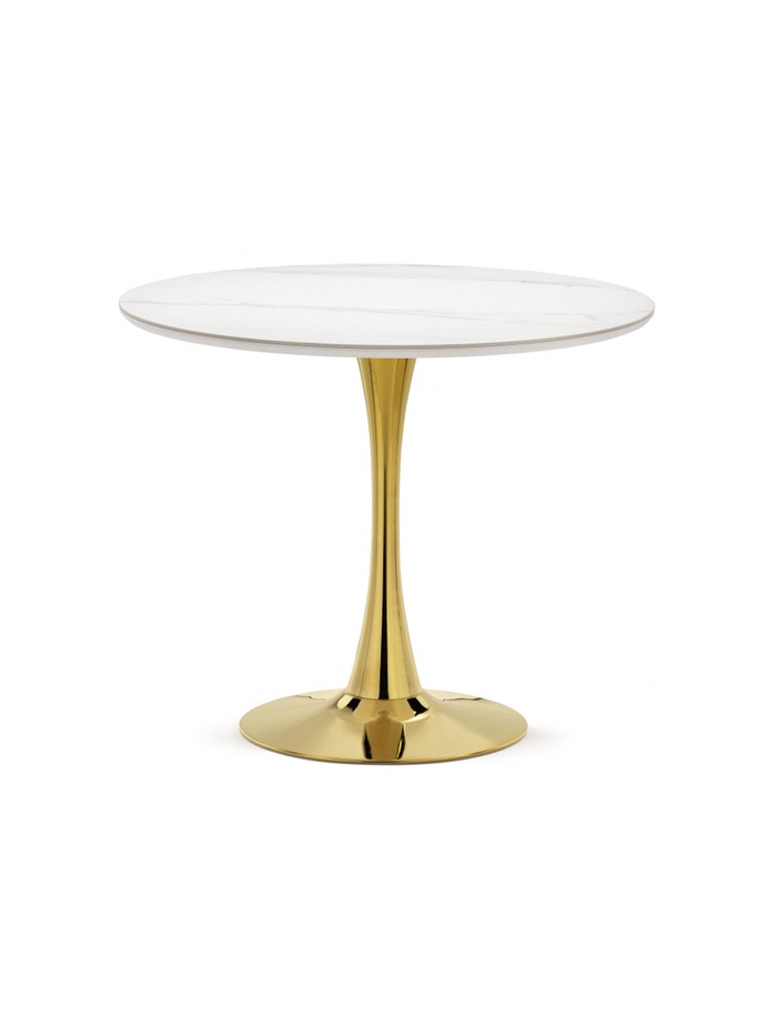 Керамический стол Тулип 90х73 белый мрамор / золото