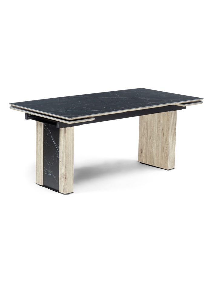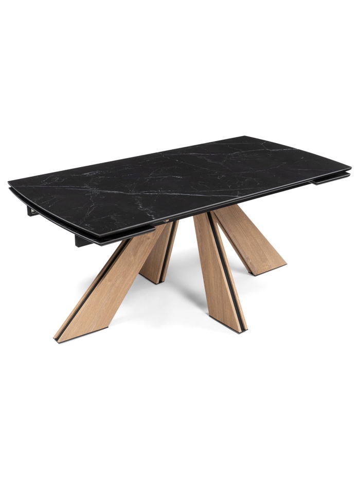 Керамический стол Шаннон 180(240)х90х79 черный мрамор / дуб монтана
