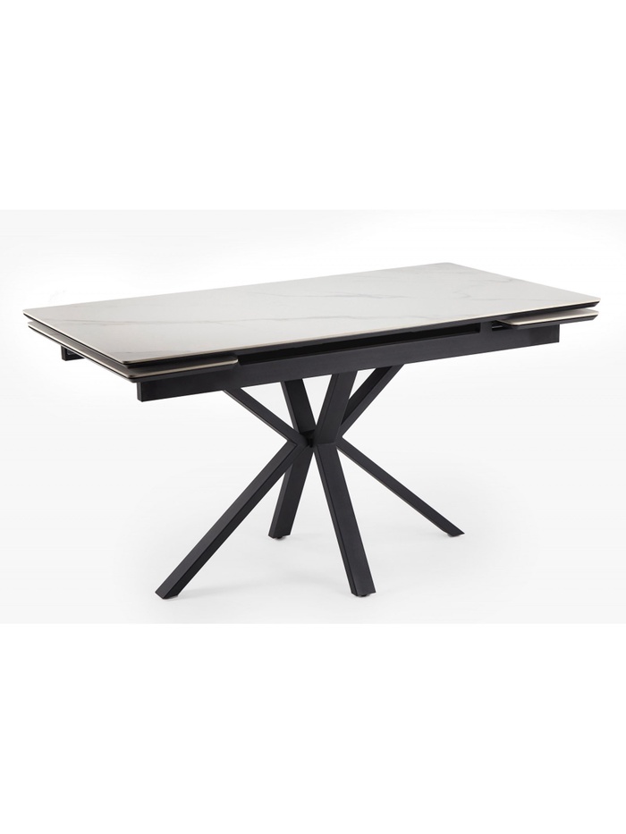Керамический стол Памелла 140(200)х80х75 белый мрамор snow white / черный