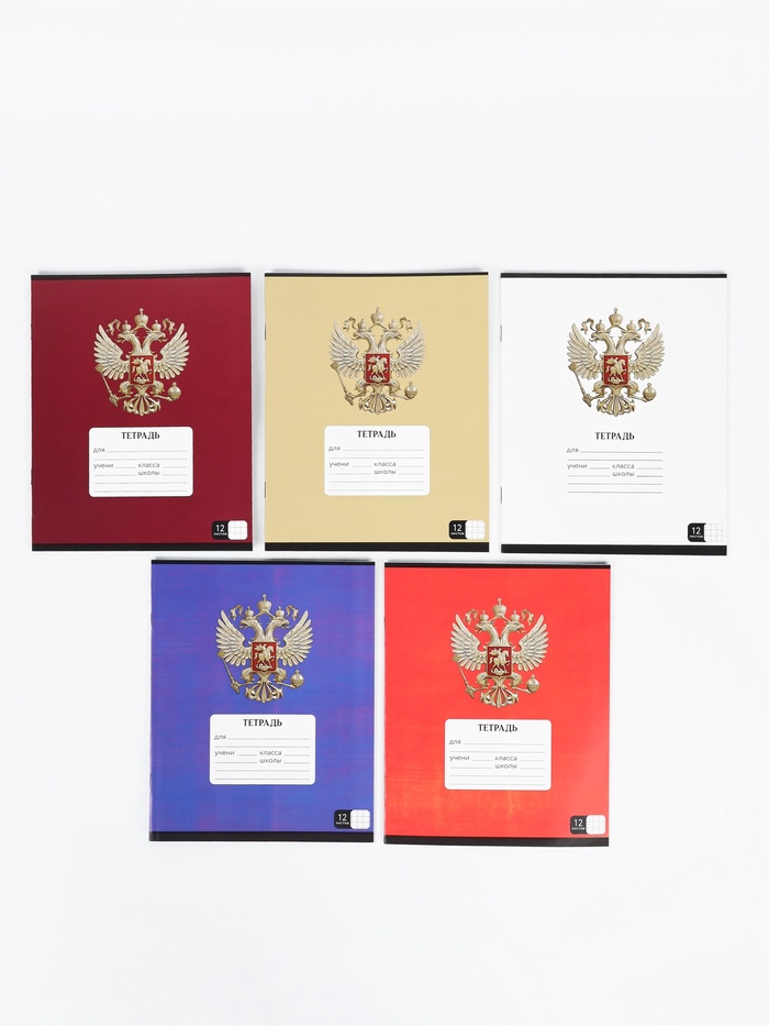 Тетрадь 12 листов в клетку "Герб", 5 видов