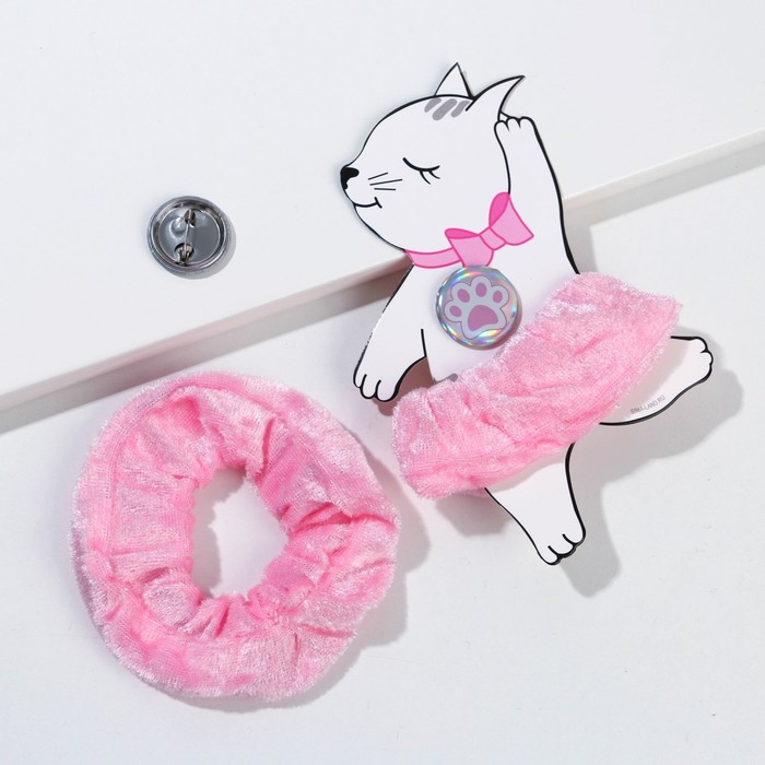 Резинка для волос и значок «Бархат», зайка