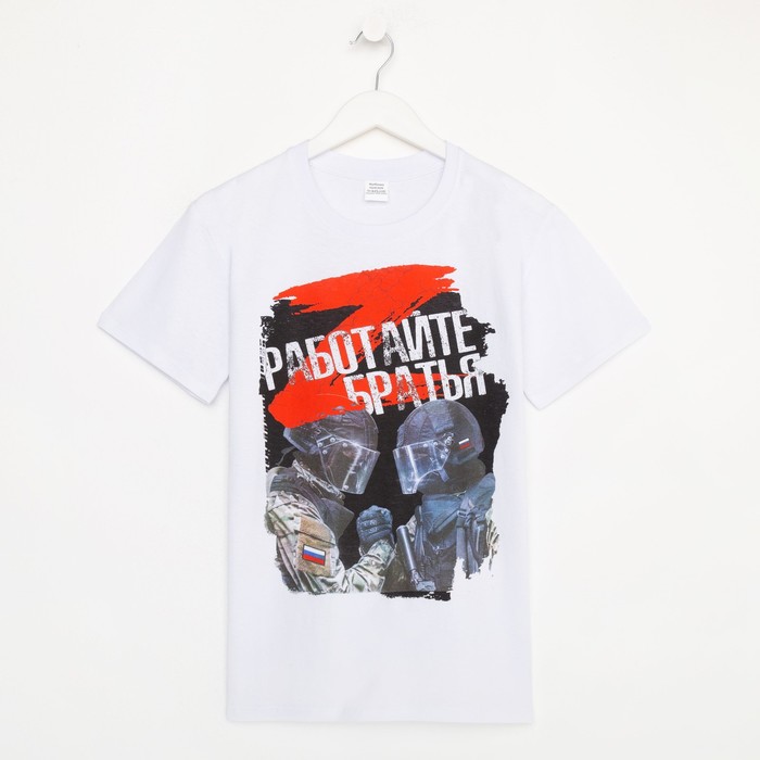 Футболка «Работайте братья», с символикой Z, размер 54, цвет белый
