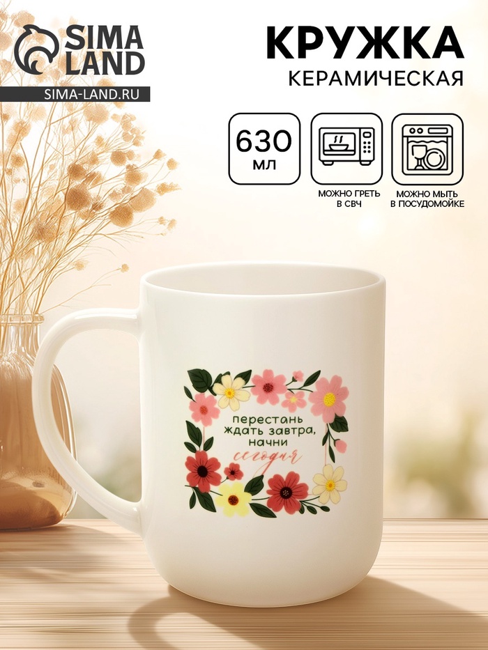 Кружка чайная керамическая «Начни сегодня», 630 мл