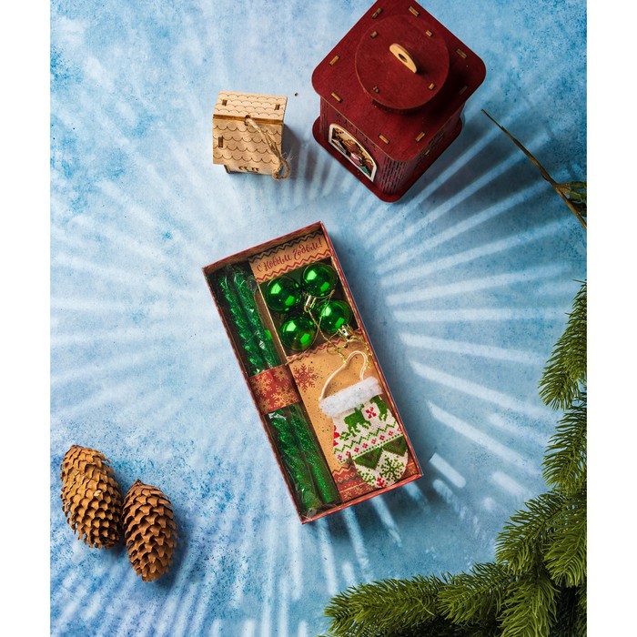 Подарочный набор «Удачного Нового года!», в наборе 2 свечи, 4 шарика, ёлочная игрушка