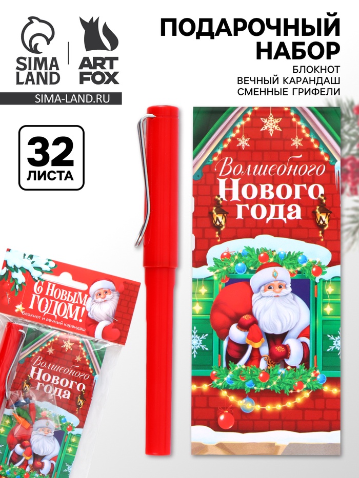 Подарочный набор новогодний «Дедушка», блокнот, вечный карандаш, сменные грифели