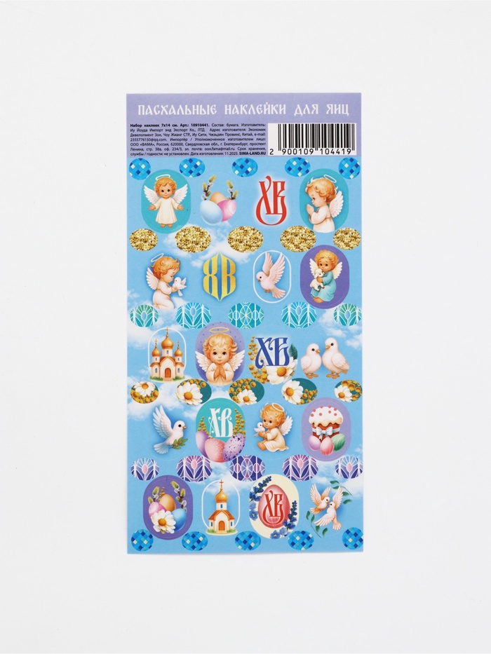 Пасхальные наклейки на яйца "Ангелы" 7,3 х 14,3 см