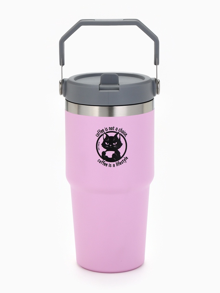 Термостакан с ручкой "Coffee", 600 мл, розовая