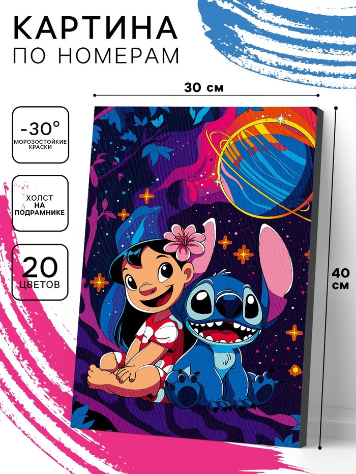 Картина по номерам на холсте с подрамником «Лило и Стич: космическое приключение» 30×40 см