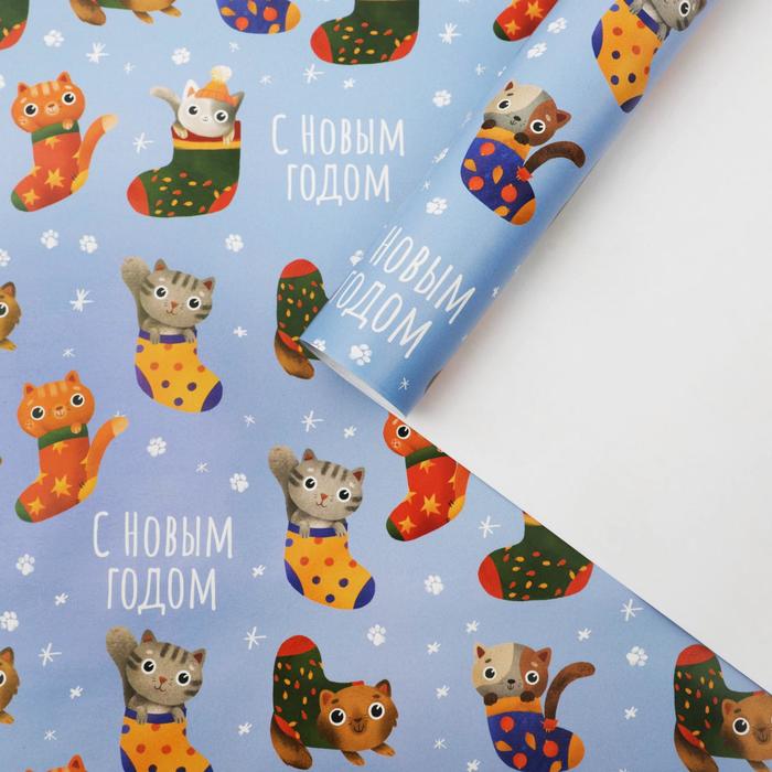 Бумага упаковочная глянцевая «Коты в носках», 70 х 100 см