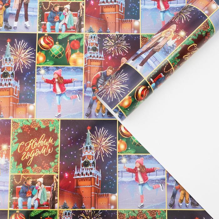 Бумага упаковочная глянцевая «Кремлёвский каток», 70 х 100 см
