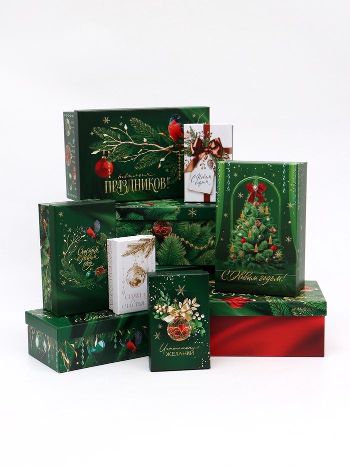 Набор подарочных коробок 10 в 1 «Изумрудные шары», 12×7×4 – 32.5×20×12.5 см